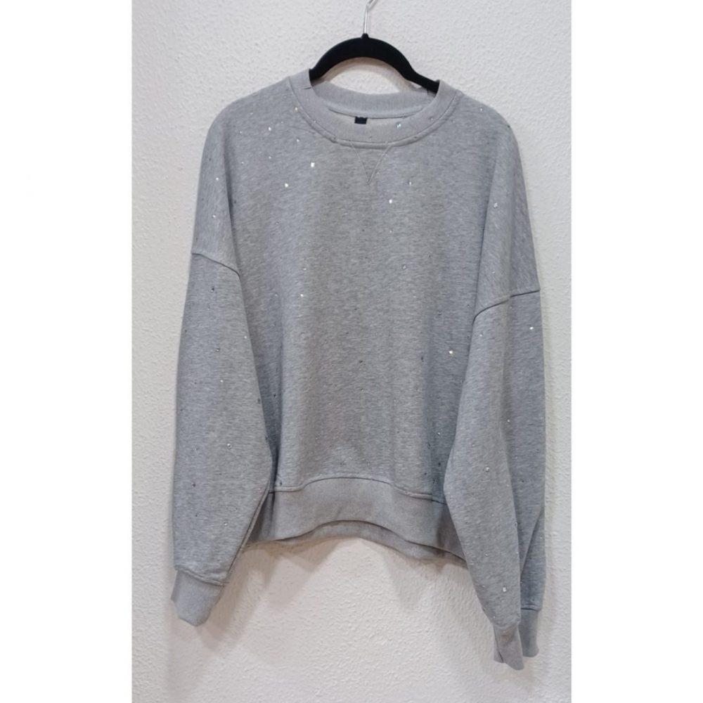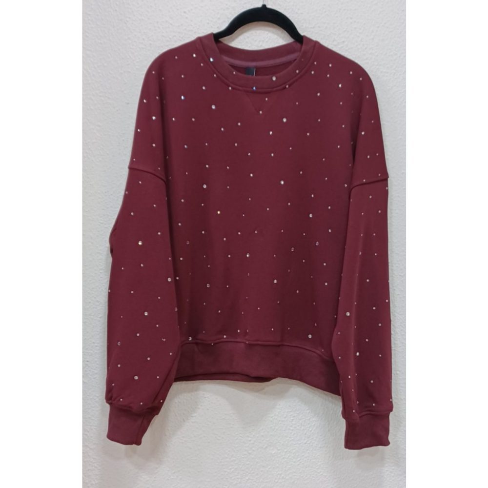 Sudadera strass por delante y por detrás, talla única, medidas: 64 cm de sisa a sisa, 108 cm contorno de goma de cadera, 58 cm de largo. 85% algodón y 15% poliester