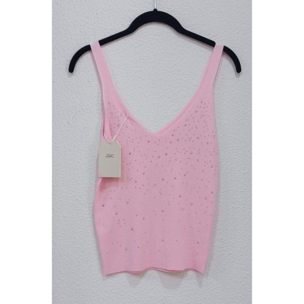 Top punto con strass, 70% viscosa, 25% algodón y 5% spandex, talla única, medidas: 70 cm contorno de pecho y 55 cm de largo.