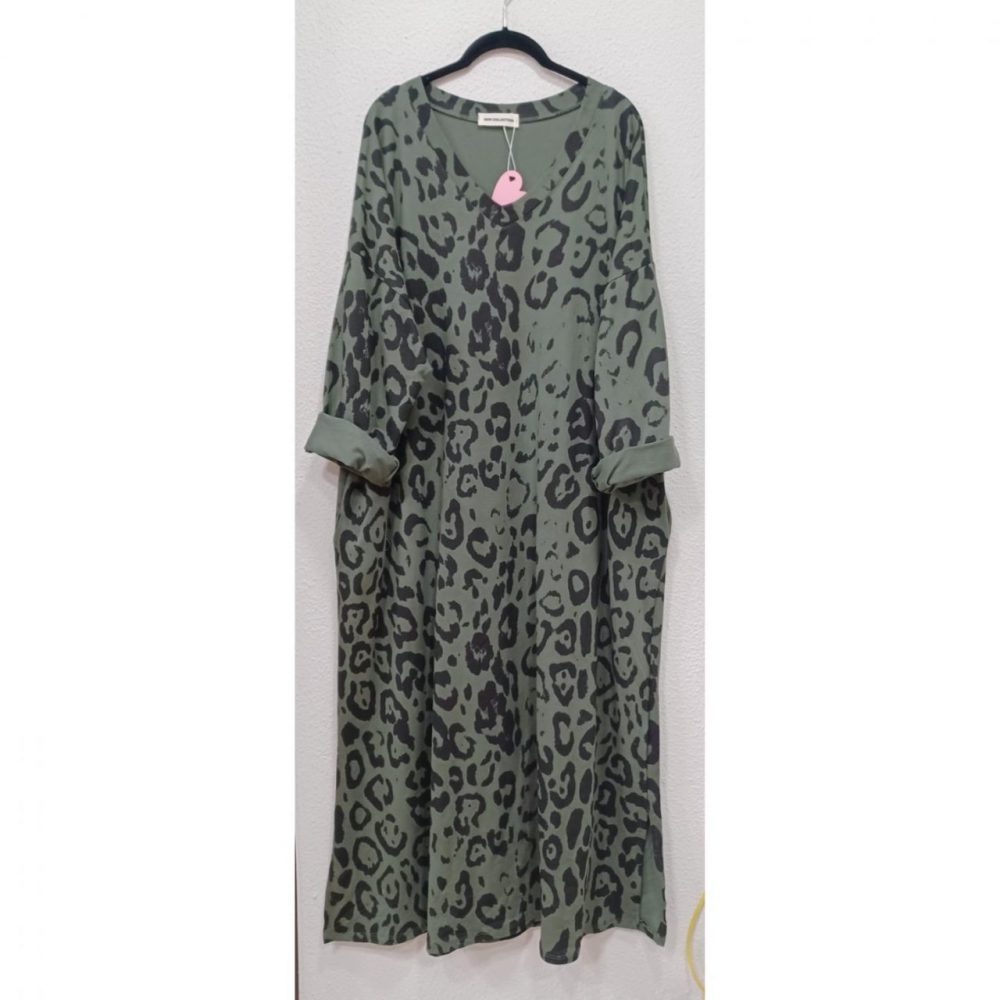 Vestido bolsillos en estampado animal print  y en algodón 100%