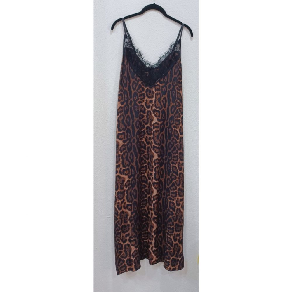 Vestido lencero en estampado animal print, aberturas laterales, talla única, medidas: 95 cm contorno de pecho, 120 cm contorno de cadera y 130 cm largo. Composición: 50% tencel y 50% viscosa