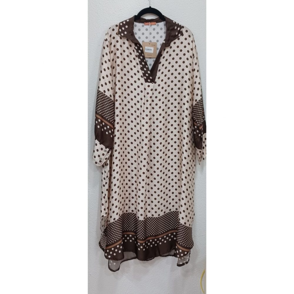 Vestido satinado con bolsillos, talla única, medidas: 62 cm de sisa a sisa, 116×123 cm de largo , 140 cm contorno de cadera, 70% viscosa y 30% seta silk